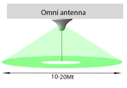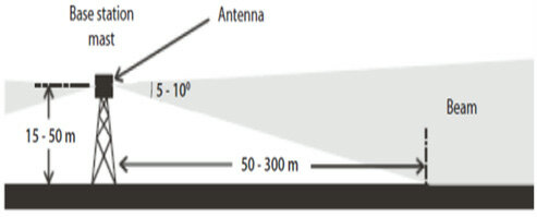 Som vist på bildet, kan antennesignalet være innstilt til å peke rett fremover og nedover, og ikke så mye oppover. Det kan bety at høyere etasjenivåer er noe beskyttet hvis antenner er montert på nærliggende, lavere bygninger eller antennetårn.