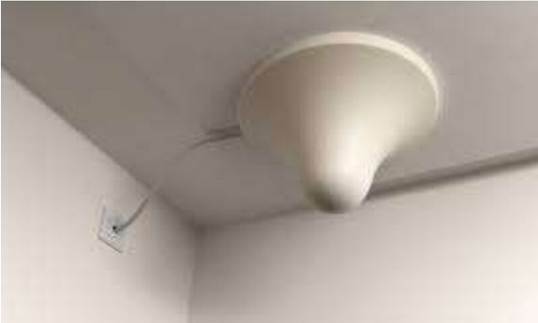 Innendørs signalforsterker brukt for å øke signalstyrken i bygninger med dårlig dekning. Oppsett (bilde til venstre); montert innendørs (senterbilde); og strålingsfelt (bilde til høyre). Bilder fra netboon.com, globalsources.com, og kingtonerepeater.com).